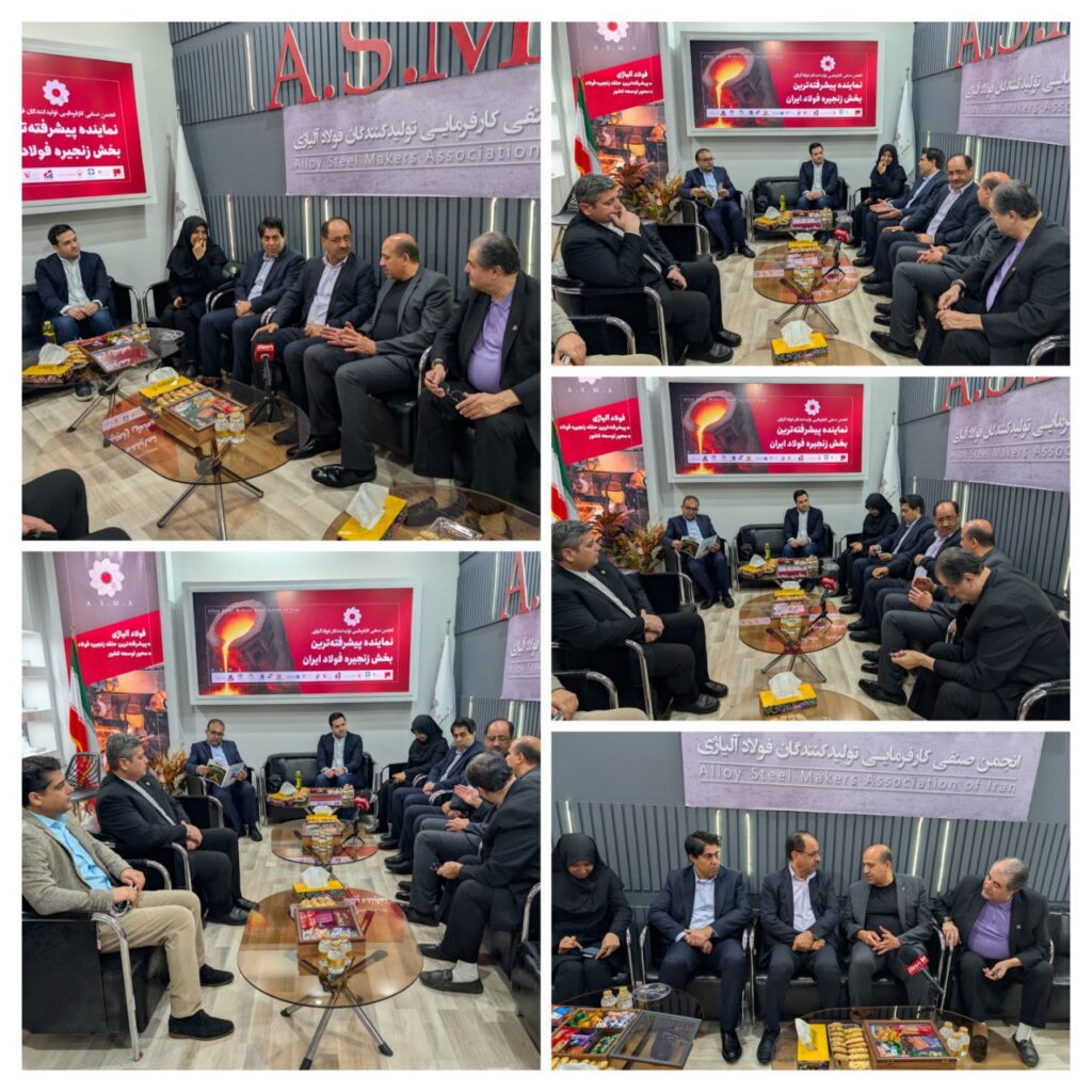 دکتر طهماسبی نایب رئیس کمیسیون صنایع و معادن مجلس شورای اسلامی و دکتر ایزدی و دکتر زارعان عضو هیئت مدیره شرکت سهامی نمایشگاهها از غرفه انجمن تولیدکنندگان فولاد آلیاژی در نمایشگاه ایران متافو ۱۴۰۴ بازدید کردند.